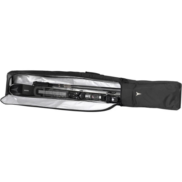 Simply pack your skis into the padded Atomic W Ski Bag Cloud and off you go to the ski resort. The bag protects a pair of skis and ski poles with its water- and dirt-repellent outer material and easy-to-clean tarpaulin lining. Suitable for skis up to 175cm long, with padding in the area of the ski binding and super fast access to the main compartment. The design: typical cloud – the unique Atomic collection especially for skiers.
